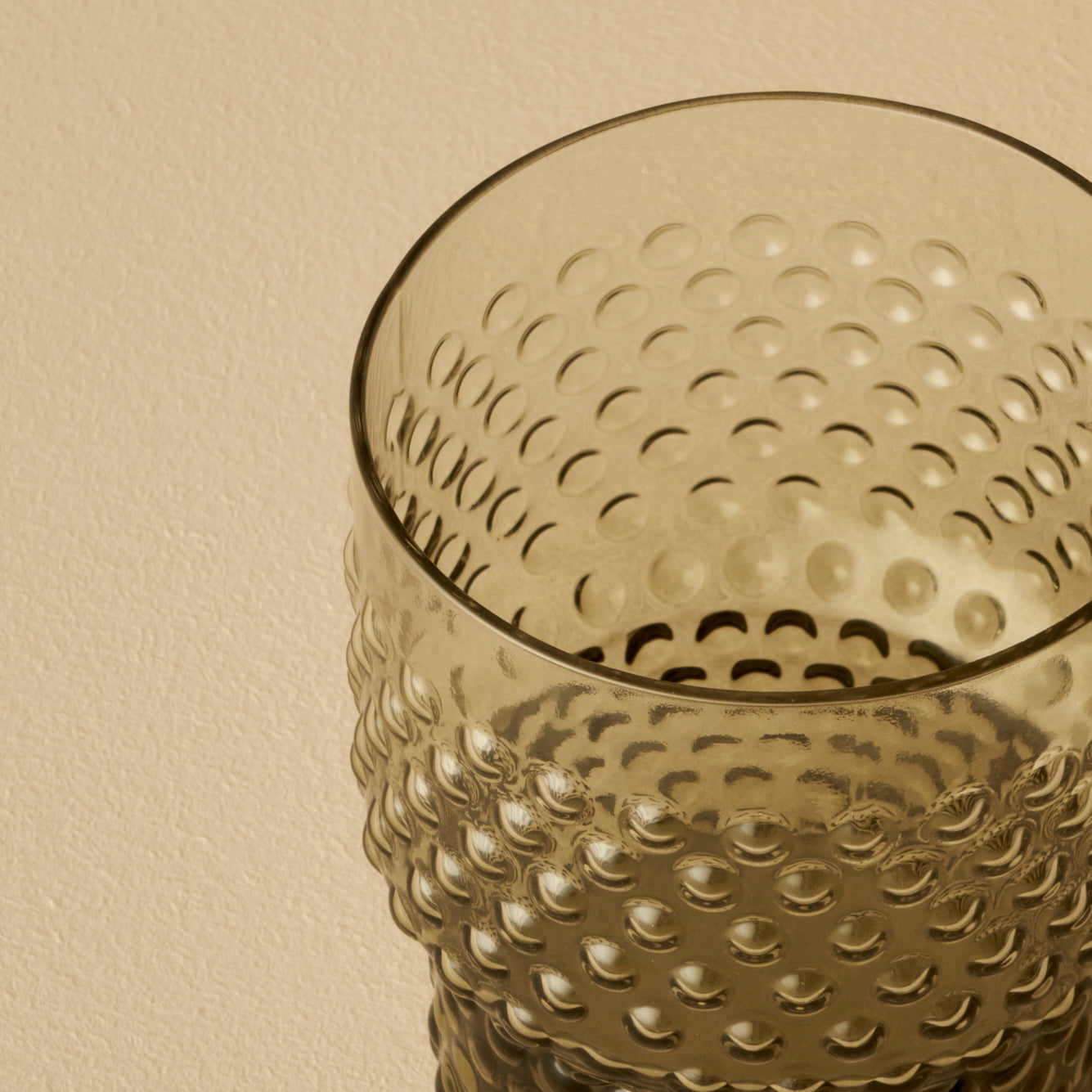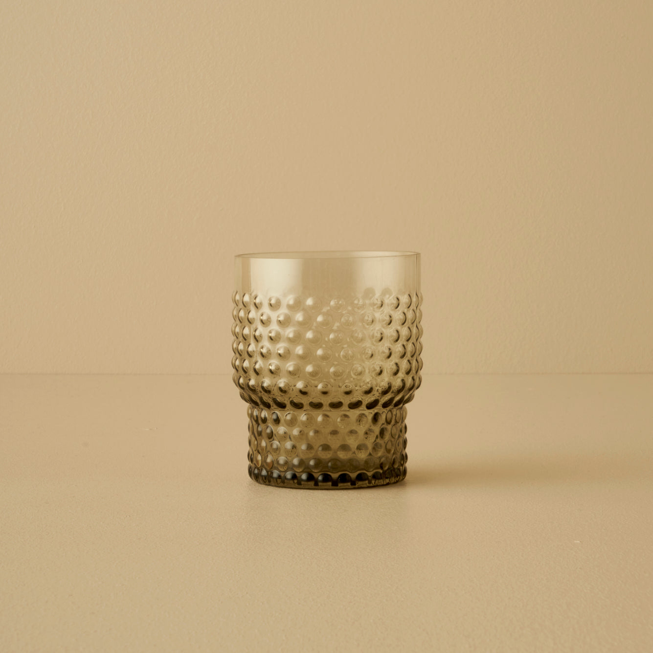 Het betreft een set van 6 glazen in antracietkleur, voorzien van een bubbelpatroon.