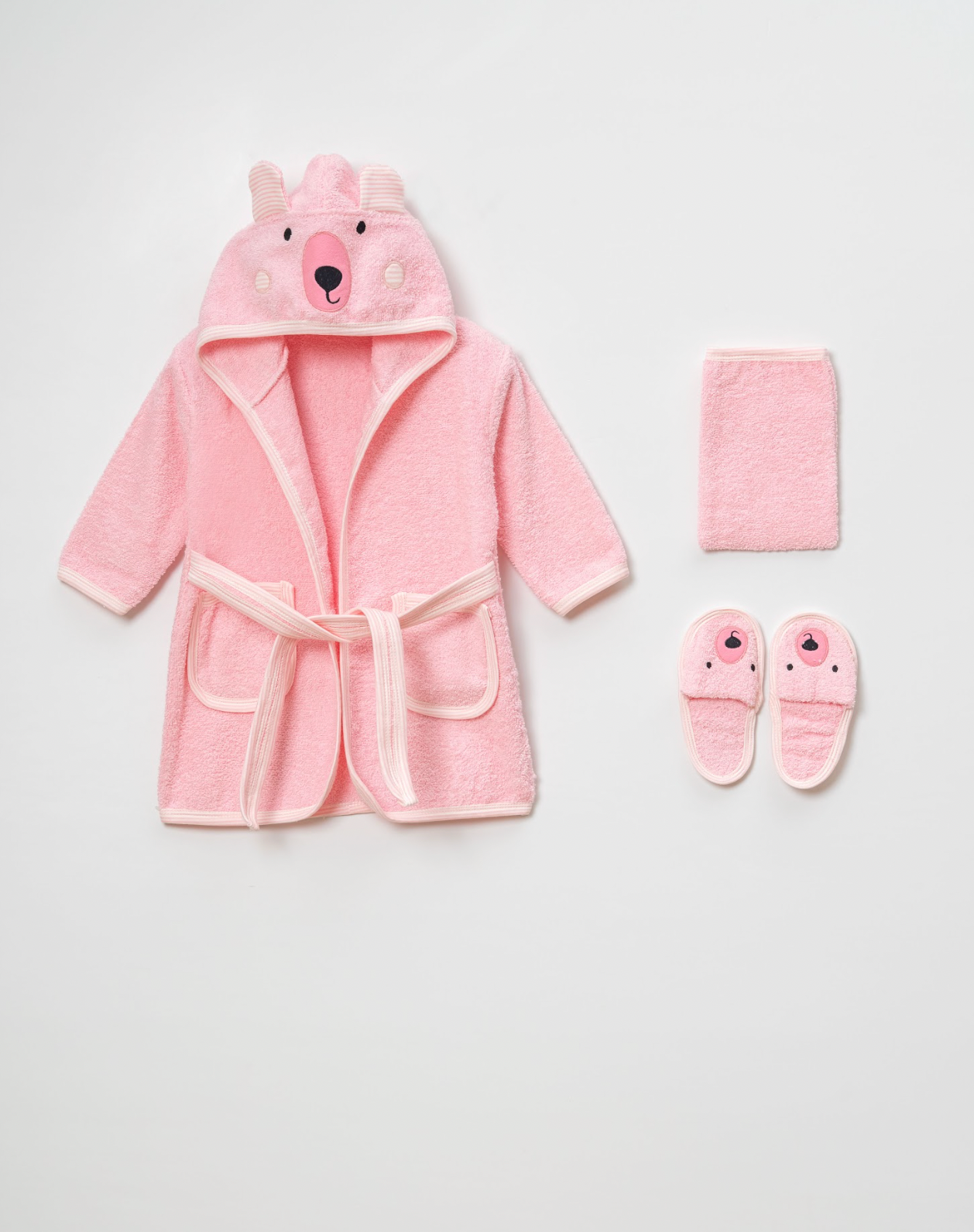Maak van elk badmoment een warm en comfortabel ritueel met deze complete 4-delige badset voor peuters. De set is uitgevoerd in een zachte roze kleur met een lief berenontwerp en is perfect voor kinderen van 3–4 jaar.